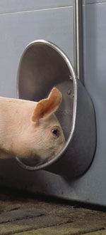 The feeder is combined with a fully automated feed delivering system. This provides the advantages of a completely closed feeding system from silo to feeder. Aroma and taste are preserved, and the pigs eat with more gusto. Dust volumes in housing are reduced, and foreign matter does not get in the feed.