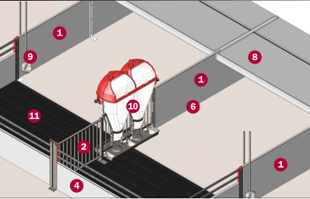 雙體喂食器可以提供更大的采食和飲水區(qū)域, 尤其適用于保育,保育到育肥 ,每個欄養(yǎng)25頭以上